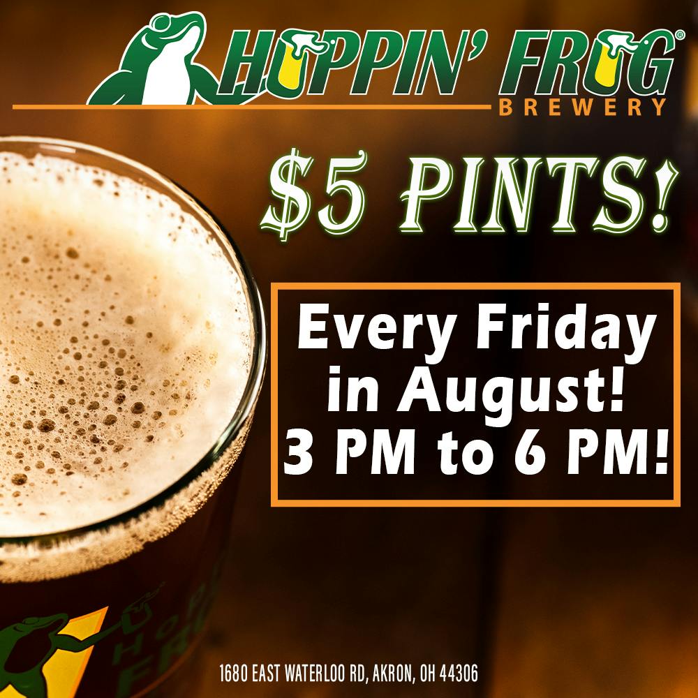 $5 Pints Every Friday in August 3 PM to 6 PM!