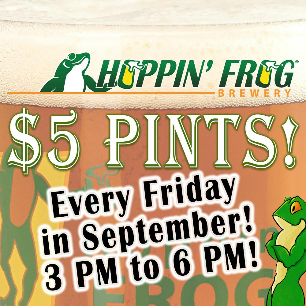 $5 Pints Every Friday in September 3 PM to 6 PM!!!