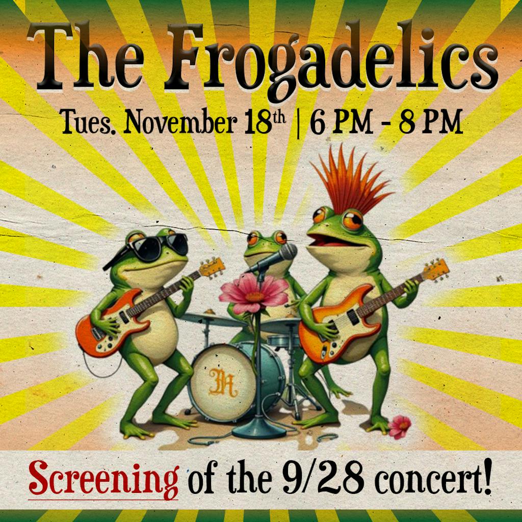 On November 18th from 6 PM to 8 PM, we’re screening the September 28th Frogadelics concert — a high-energy performance featuring Hoppin’ Frog’s Founder and Brewmaster, Fred Karm.