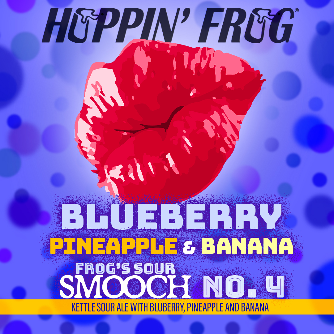Join us for a super special release from our fruited kettle sour series! Introducing Frog’s Sour Smooch No. 4 Blueberry, Pineapple, and Banana!! Our Frog’s Sour Smooch Series delivers a lip-smackin’ kettle soured beer with loads of real fruit purees to bring you one heck of a delicious experience! Get’em while you can and treat yourself to the good stuff!
