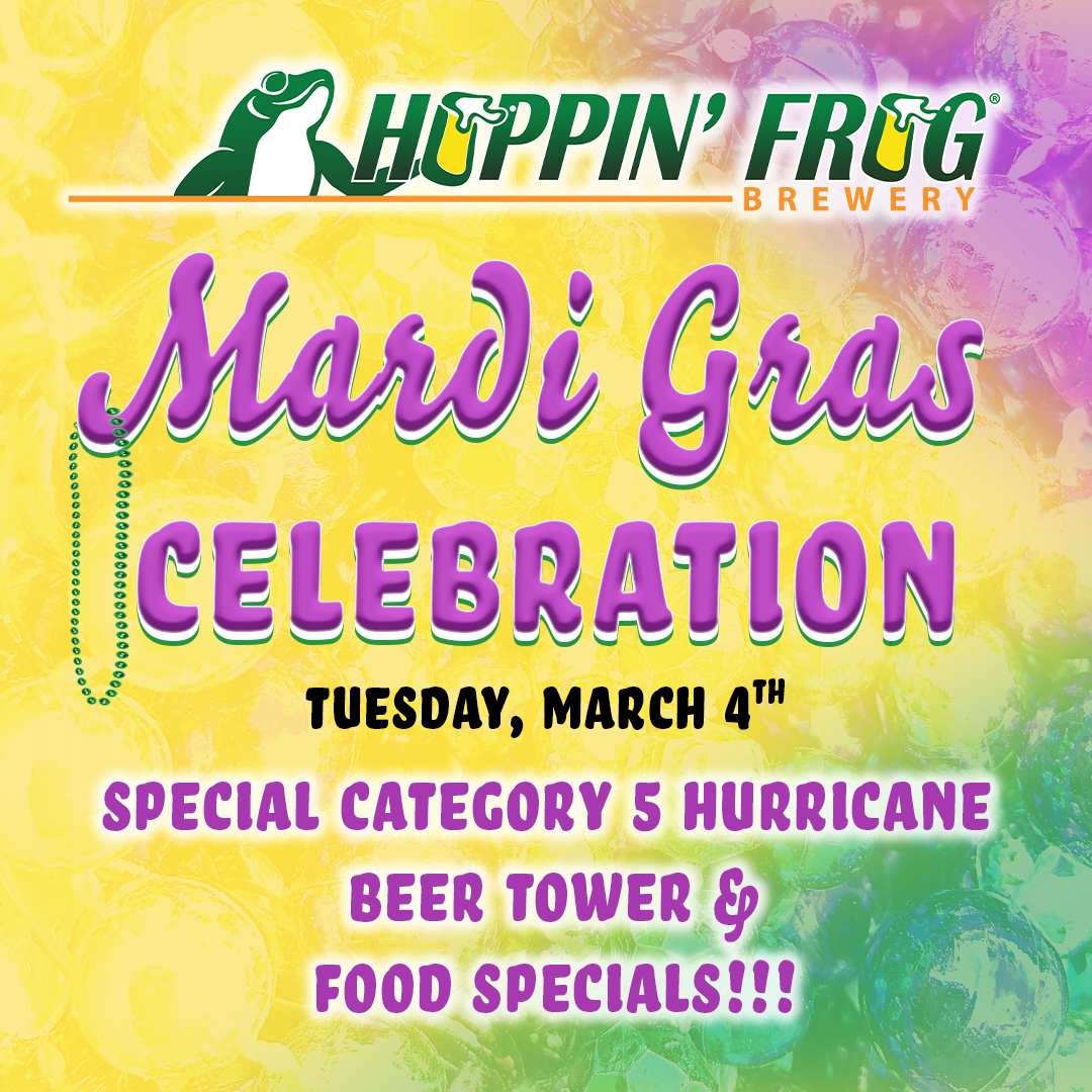 Join us for Fat Tuesday, as we celebrate Mardi Gras! We will be offering a special Category 5 Hurricane Beer Tower – This New Orleans treat will blow you away. Also, Ed our former Tasting Room general manager who helped start this annual tradition will be joining us at 5:30pm to celebrate! We’ll also have food specials and more!!