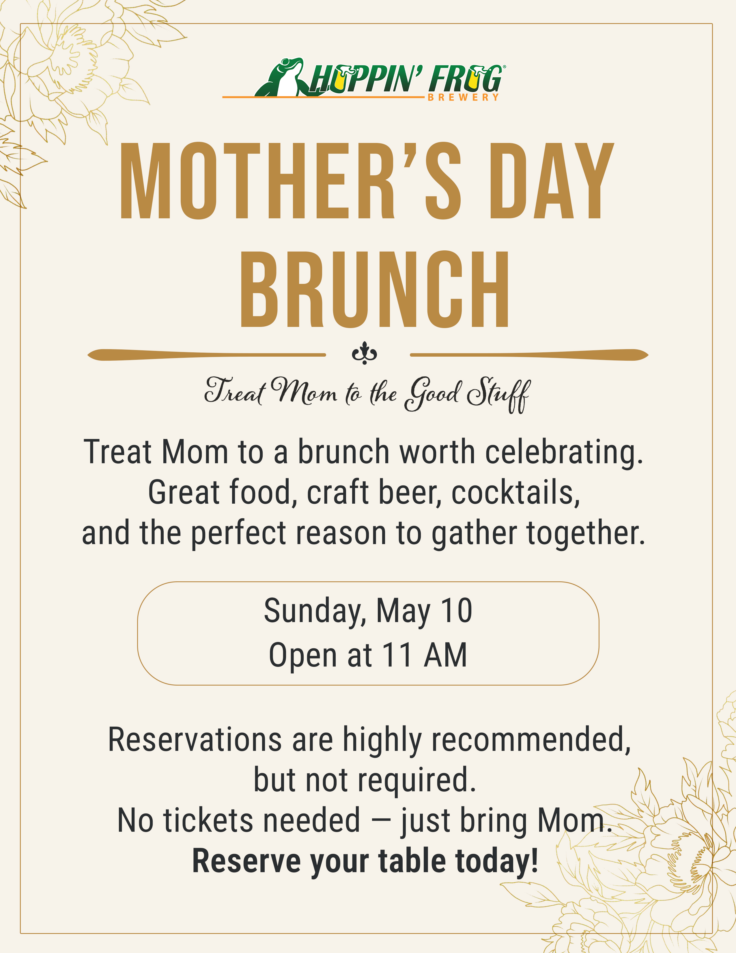 Mother’s Day Brunch at Hoppin’ Frog Brewery 💐