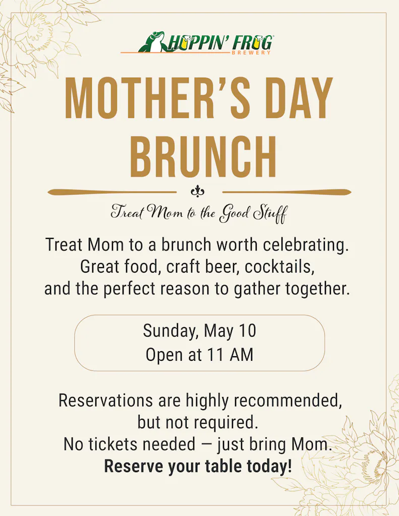 Celebrate Mother’s Day with a brunch worth gathering for at Hoppin’ Frog Brewery.