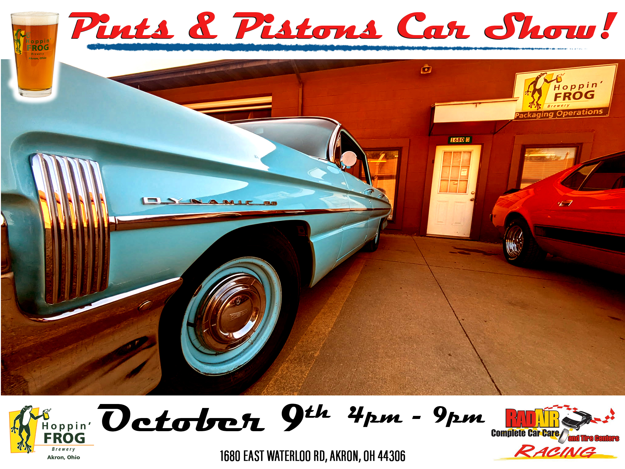 Pints & Pistons Car show at Hoppin’ Frog!!