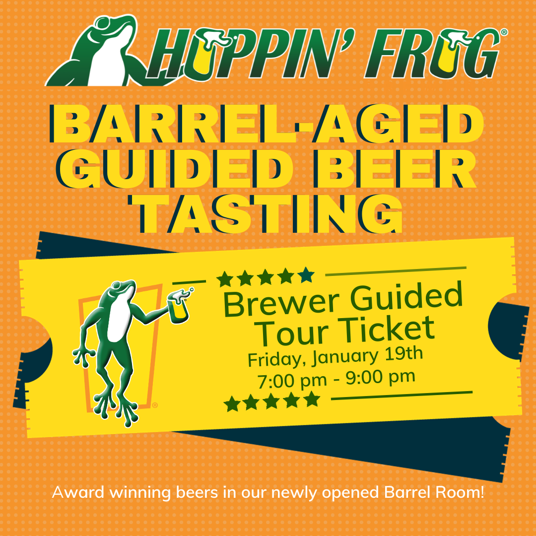 Follow the link to purchase tickets! Seating is limited! https://shop.hoppinfrog.com/product/barrel-aged-guided-beer-tasting-friday-january-19th-7-9pm/