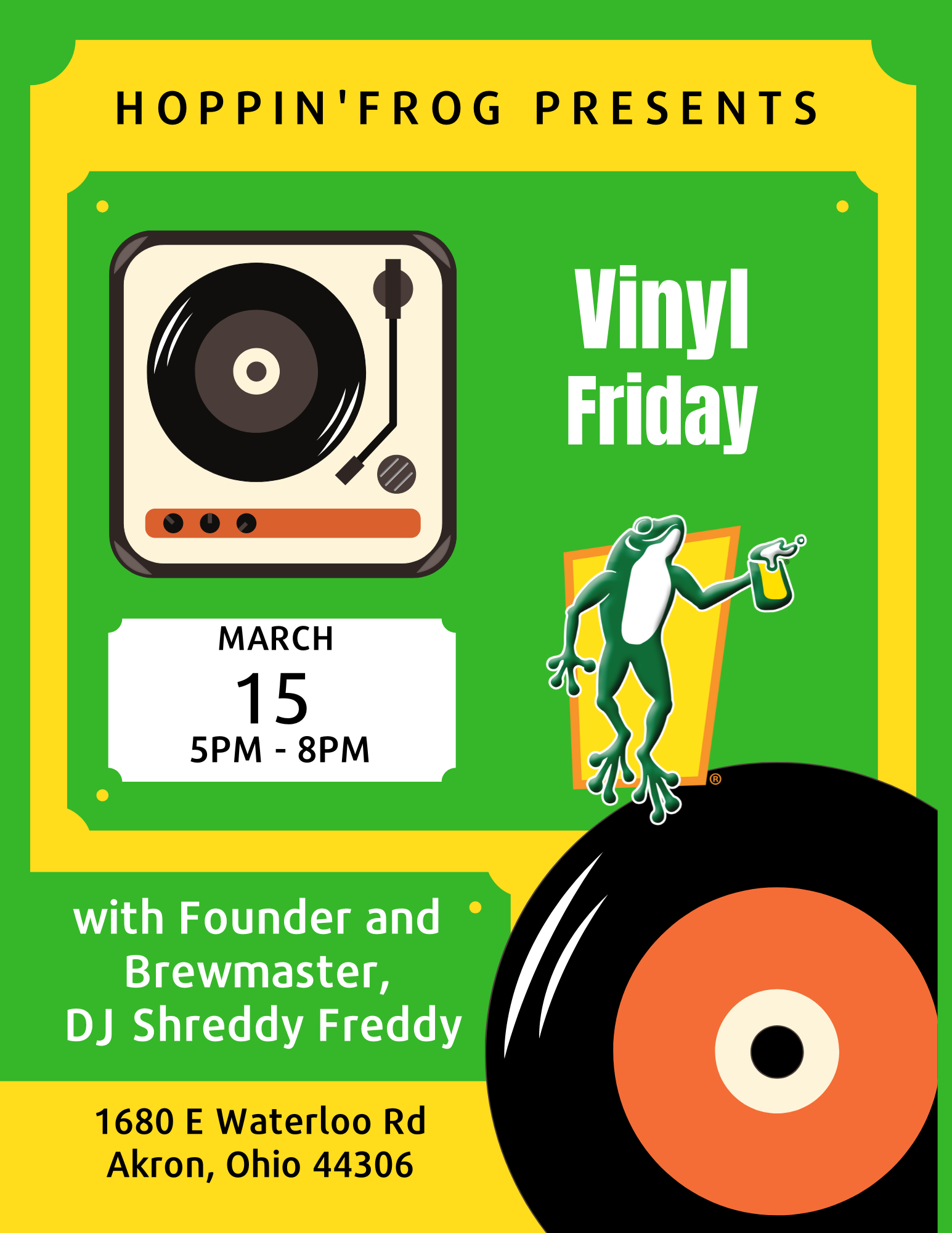 Rock out this Friday, March 15th, as we spin vinyl records with Founder and Brewmaster DJ Shreddy Freddy and hear his flavor of music the way the artists meant for it to be heard – through the magic of vinyl.