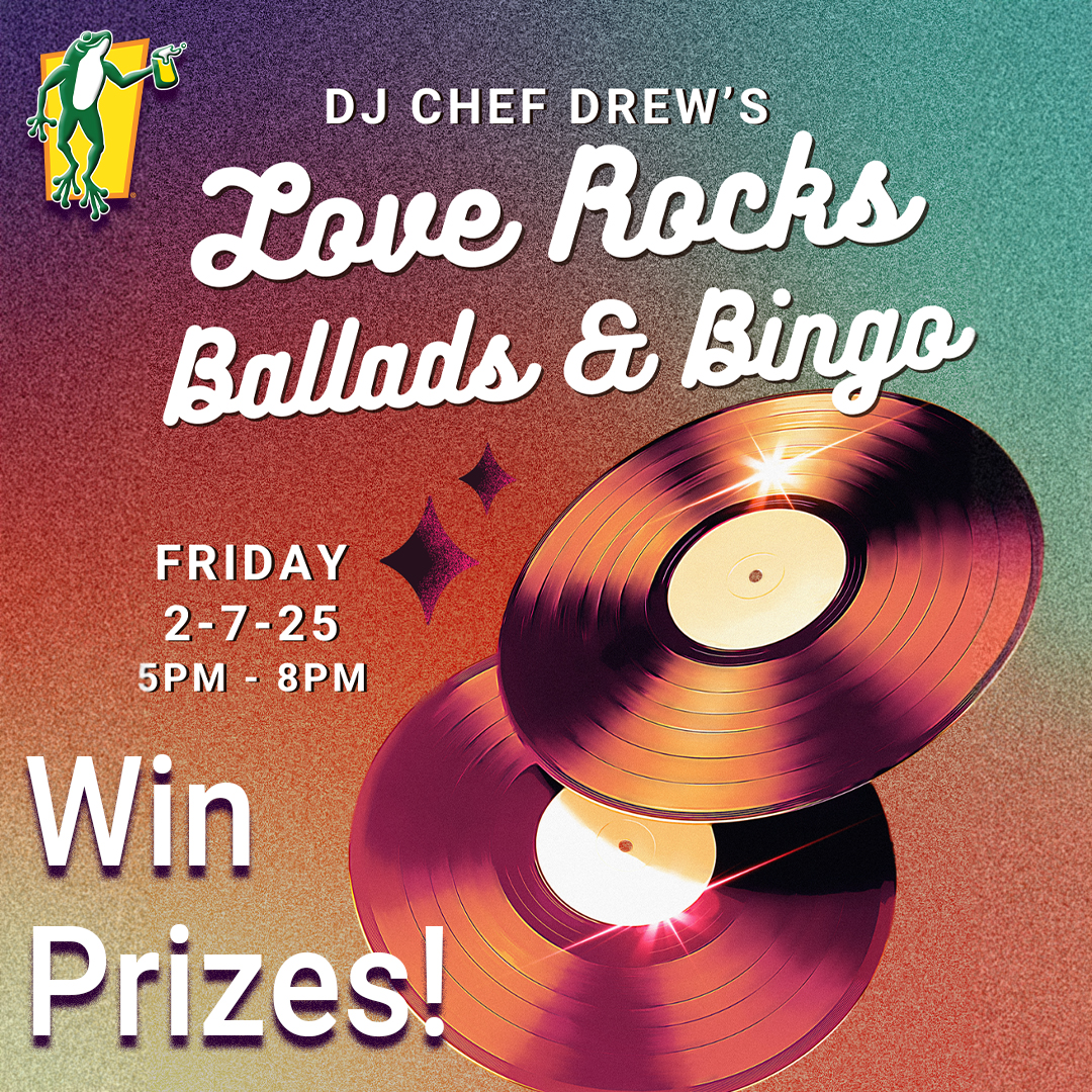 DJ Chef Drew will be spinning classic love rock hits and soulful ballads – all on vinyl, while playing Music Bingo and giving away Gift Cards! Get ready for a unique twist with Music Bingo – play along as your favorite tracks fill the air and cross off those squares. Grab a drink, relax, enjoy the great vibes, and an evening of Rock!